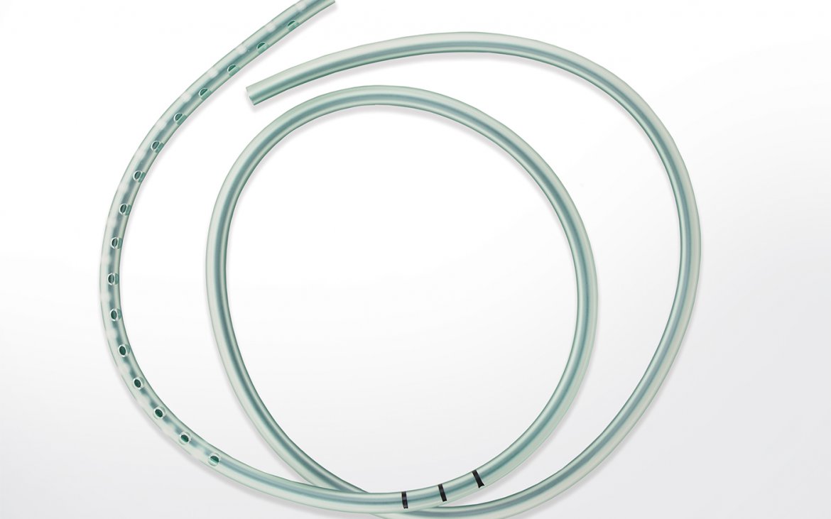 wykonany z medycznej odmiany PCV o optymalnym współczynniku twardości, zapewniającym drożność drenu przy jednoczesnym zachowaniu wysokiego stopnia atraumatyczności