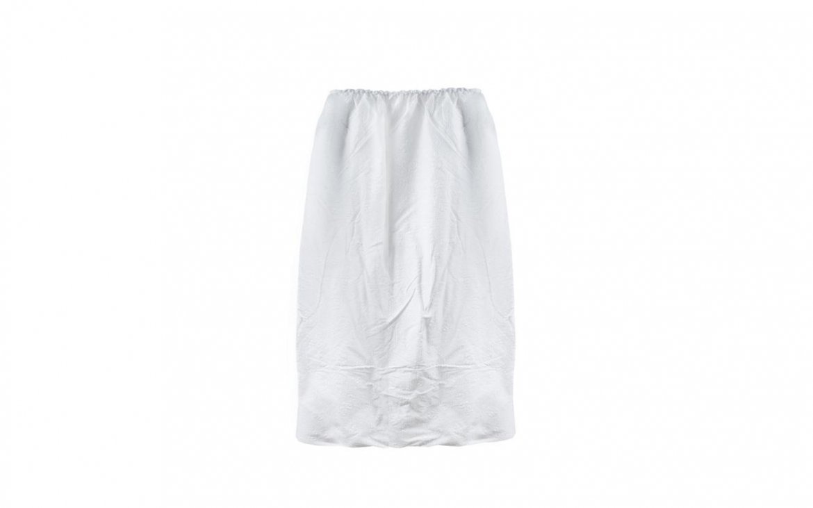 Jednorazowy peniuar w kolorze białym. Wykonany z włókniny, z gumką celem dopasowania rozmiaru.
